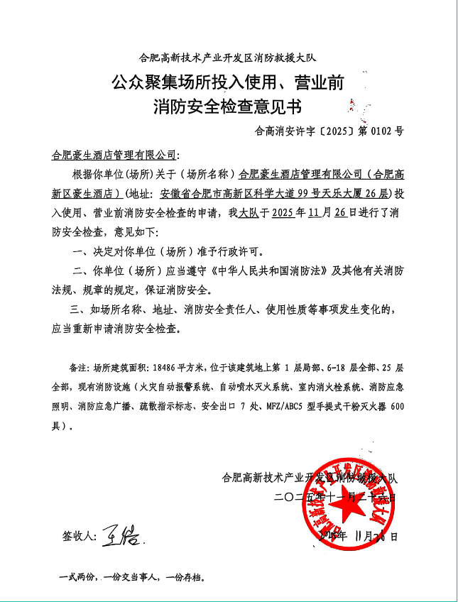 合肥豪生酒店管理有限公司入围2025-2026年安徽省党政机关会议场所保障服务开放式框架协议采购方案的结果公告-开放式入围结果公告